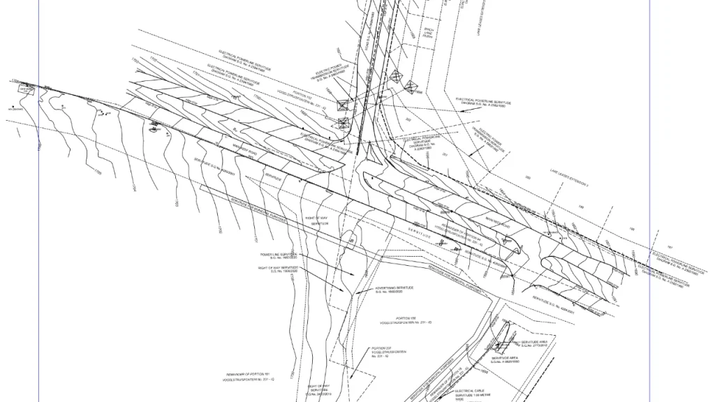 Our experience spans major projects such as “The Glen” shopping centre, the Pennyville to Fleurhof 11kV power line, and the Heineken Brewery industrial township. Using advanced surveying technology and CAD software, we deliver precise plans that meet industry standards, ensuring seamless collaboration with engineers and contractors for successful project outcomes.